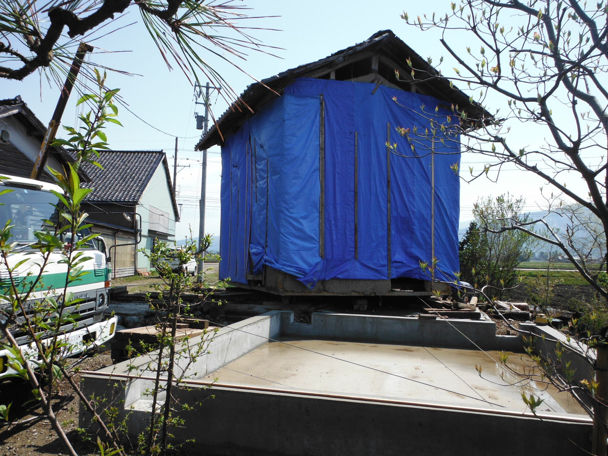 蔵の移設工事 2013.05.17 さて、今回は蔵の移設工事をピックアップ 弊社では蔵の改修だけではなくそのものを移設する工事、曳家(ひきや)もさせて頂いております。 家がそのまま違う場所に移動するのは一体どういうこと? 実際に見るチャンスが今までなかったのですが、今回は押えました 今回は建物をゆっくりと90°回転させながら移動先の基礎へ引っ越しします。 お家の引っ越しは引っ越し業者ではなく弊社にご連絡を!