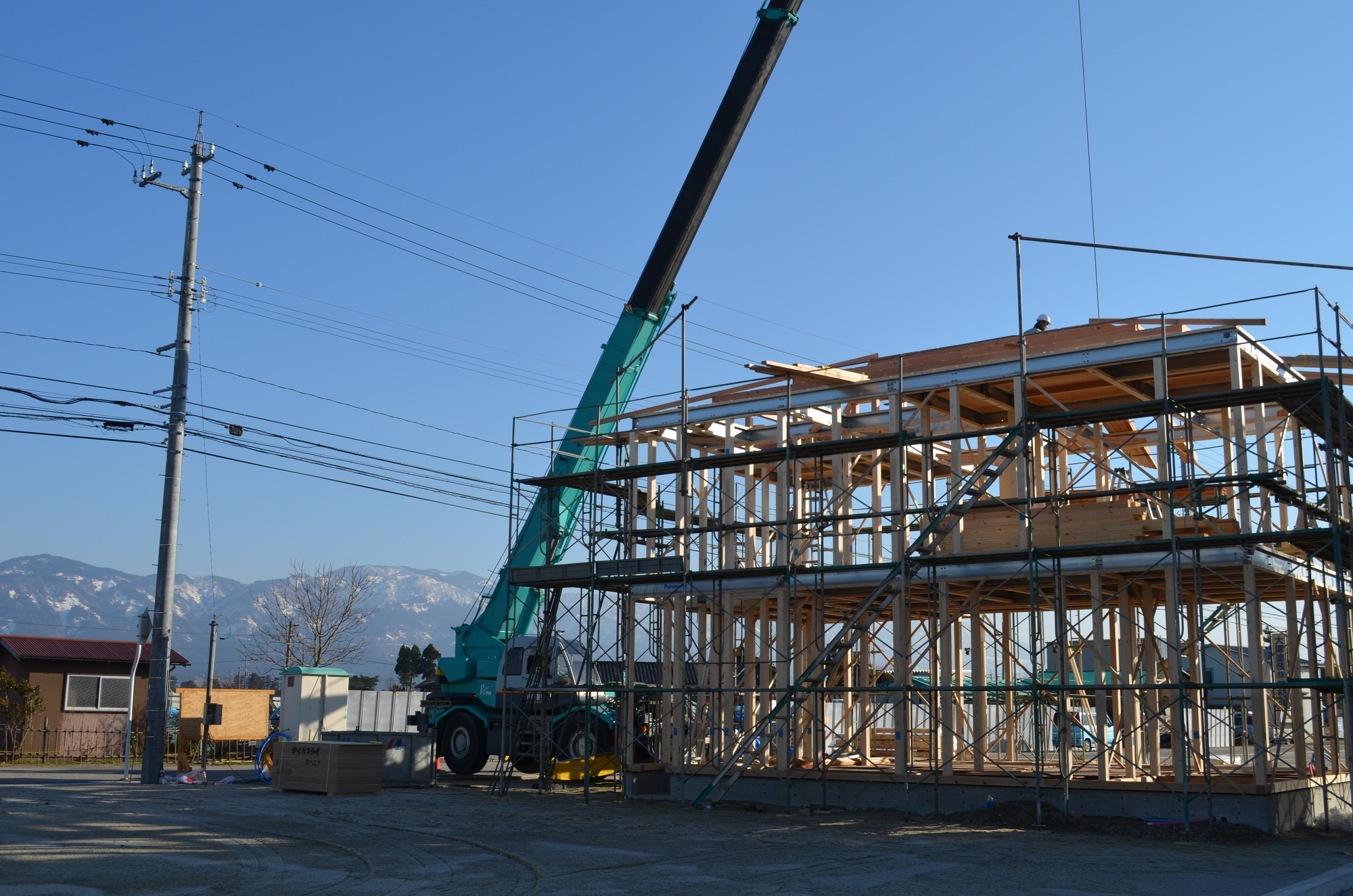 上棟* 2013.03.15 本日は快晴と天候に恵まれた中、高堀にて、お客様T様邸の「上棟」工事が行われました。 T様、本日はおめでとうございます! パナソニック テクノストラクチャー工法の鉄と木の複合梁の構造が しっかりと見られます(*^_^*) これからが楽しみですね!