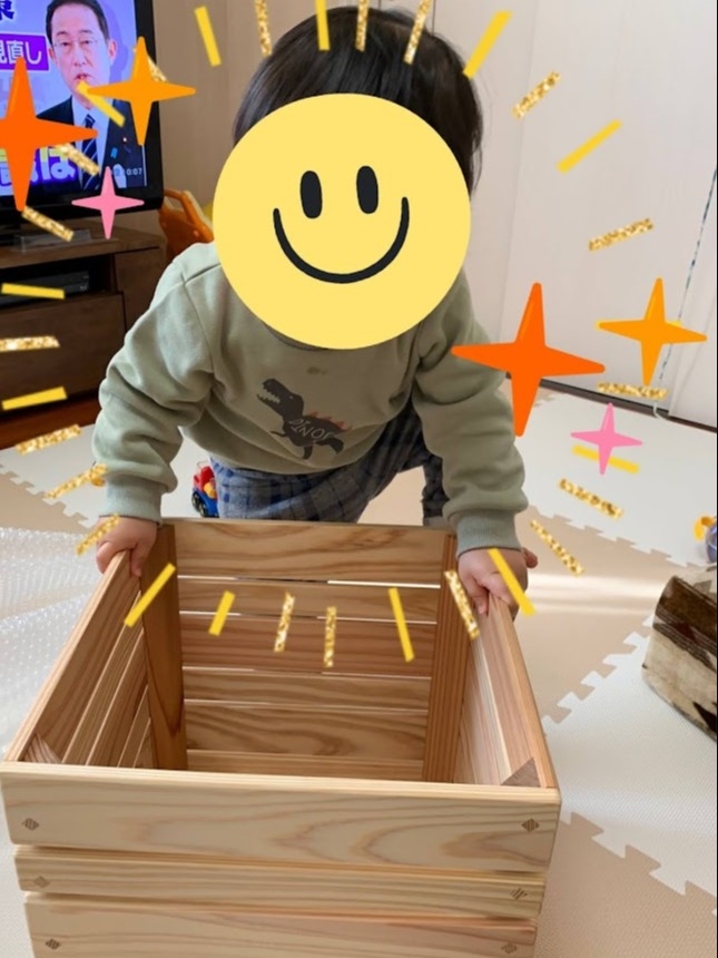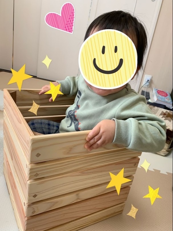 子供も箱の中に入ってみたり、皿でおままごとをしたりおやつを食べたりと楽しそうでした