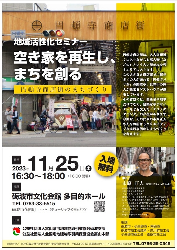 名古屋の商店街を再生させた建築家「市原正人」さんの講演会があります