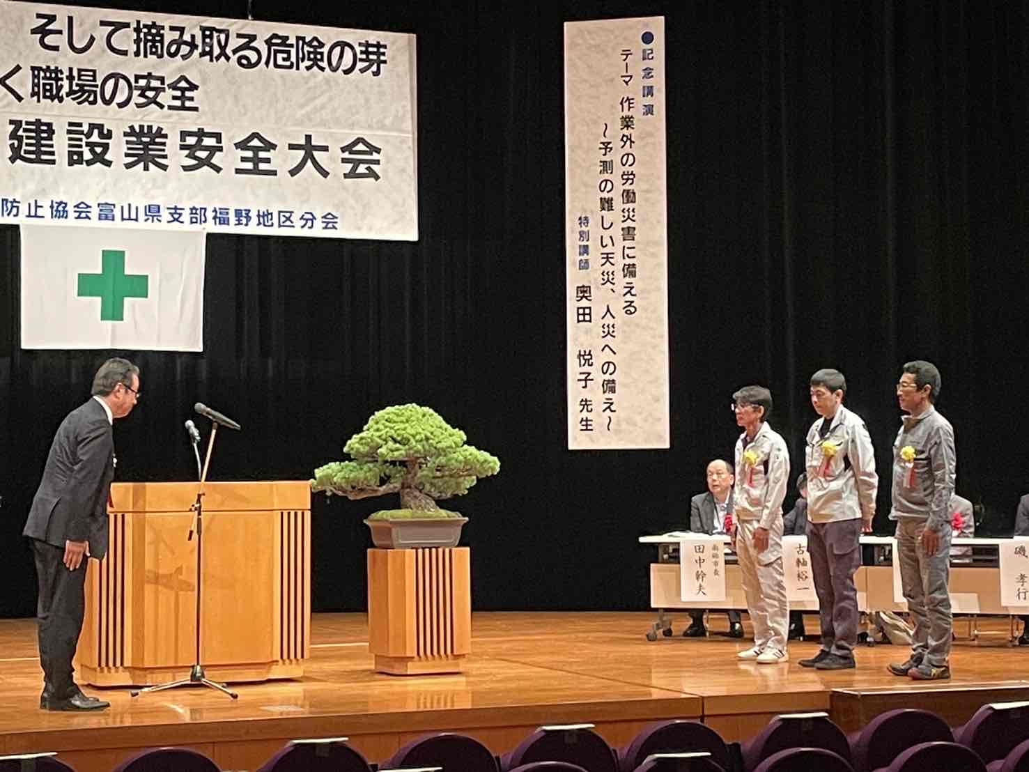 大会では労働基準監督署署長と南砺警察署署長による講演、さらに記念講演として今年の地震の発災を受け、天災・人災に関して一般社団法人RISK WATCH 奥田悦子さんに講演を頂き、危機管理の意識を高めることができました。