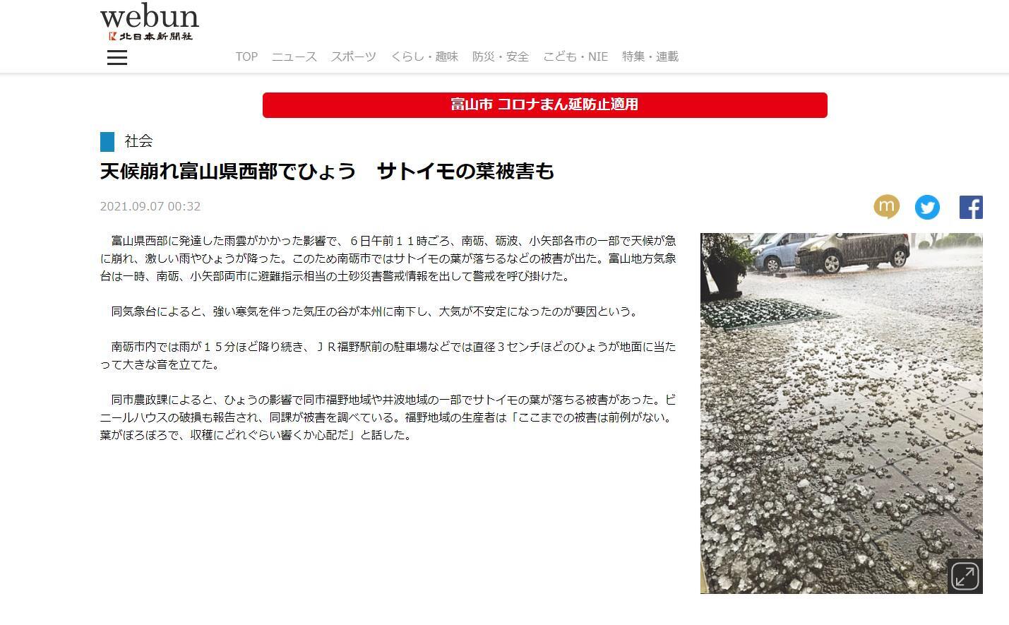 南砺市内の一部地域でゴルフボールほどの大きさの雹が降りました❄️