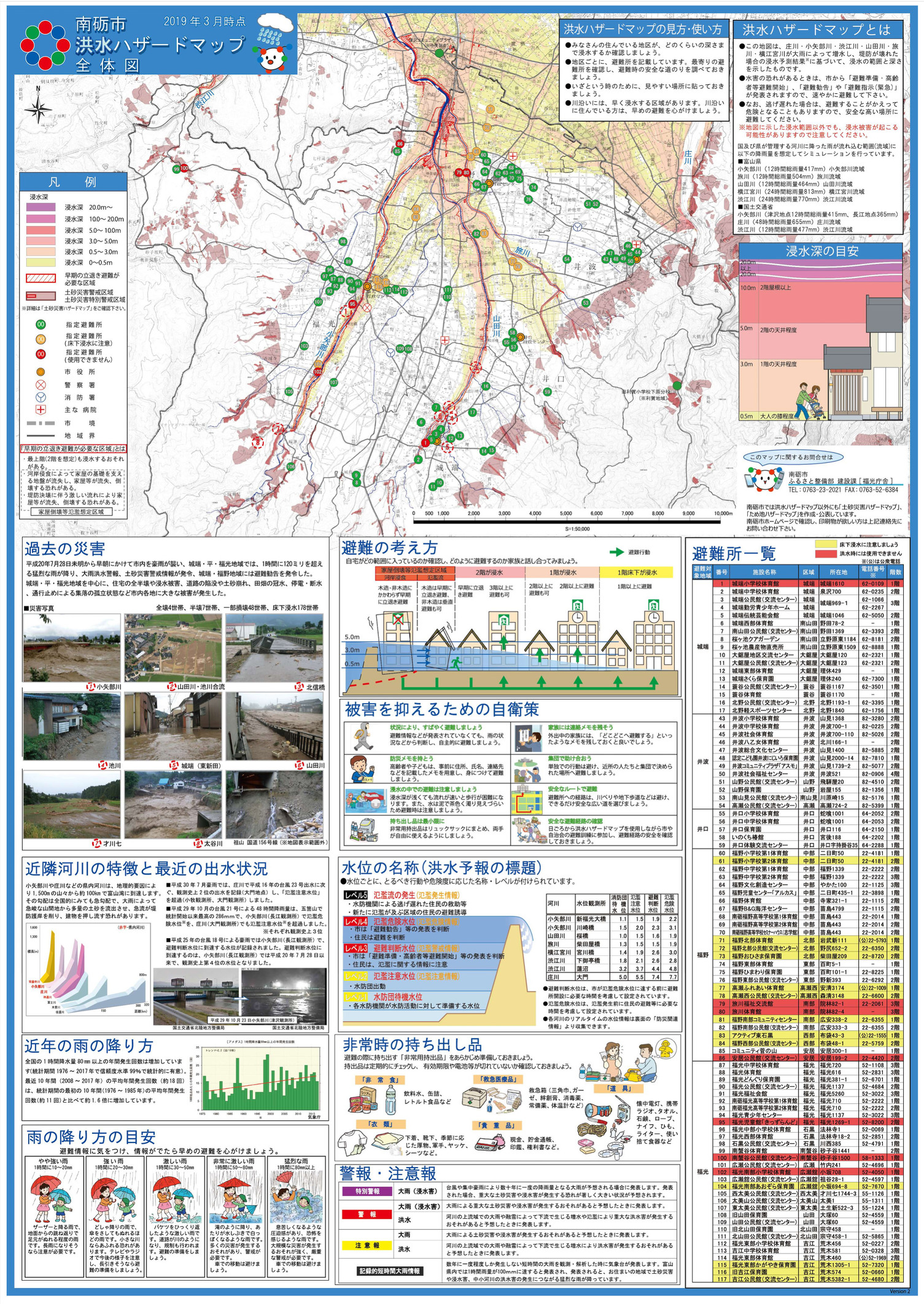 南砺市のHPには「洪水避難地図(ハザードマップ)」が掲載されています。富山県は自然災害が少ないとはいえ、いざという時用にチラッと見られることをオススメします。