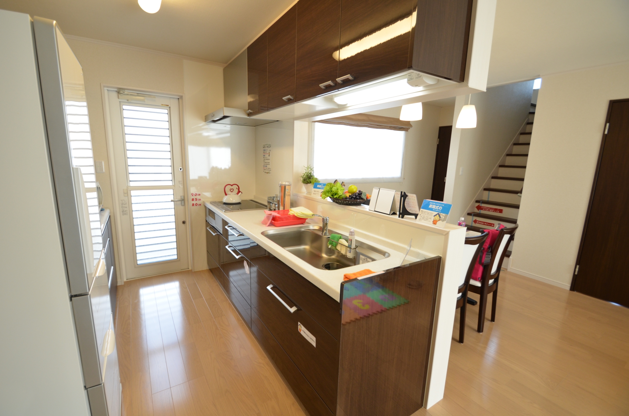 子育て家族に優しい家 2023.10.30 リビングダイニング キッチンからリビング・和室が見え、遊ぶお子さんの姿を安心して見守りながら家事をすることができます 和室 キッチン キッチンの高さを調整できます。毎日使うから体に優しく、使いやすくあってほしいですね 料理をしながら家族が帰ってくる姿をみて、自然と「おかえり」と会話が始まります 階段 神能工務店のこだわりは、幅の広い階段 家庭内で起こる事故の中でも、階段は多く起こっています 幅が広いことで、すれ違いのしやすさ、荷物をもって上り下りしやすい そんな配慮がされた設計です 子ども部屋