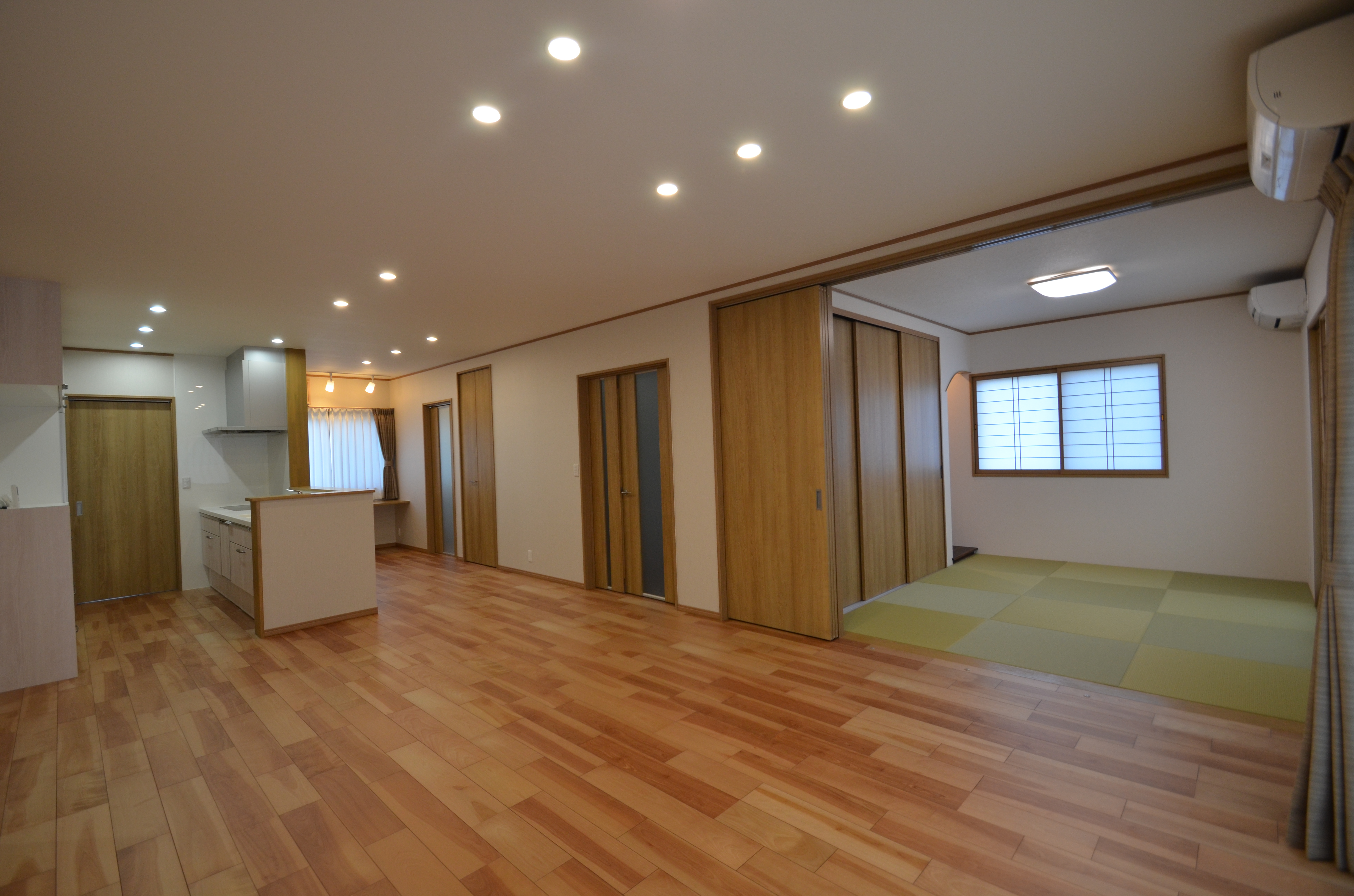 キッチン・ダイニング・リビングが仕切りなく一間になっているので、スッキリ広々とした空間。