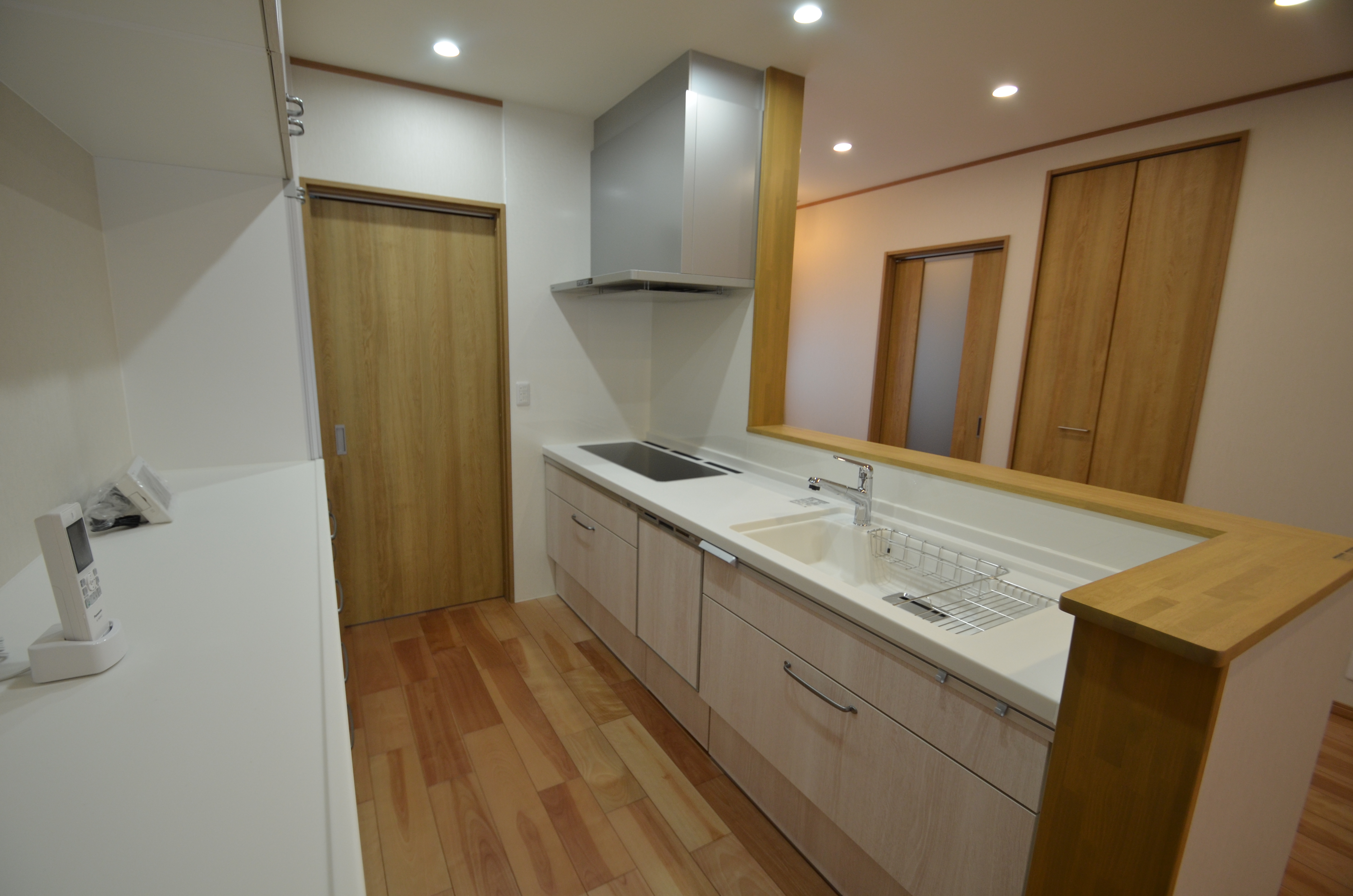 また、玄関からリビングへつながる扉を開けるとキッチンがすぐ目に入るため、キッチンの手元が見えないように壁を高くする工夫がされています。