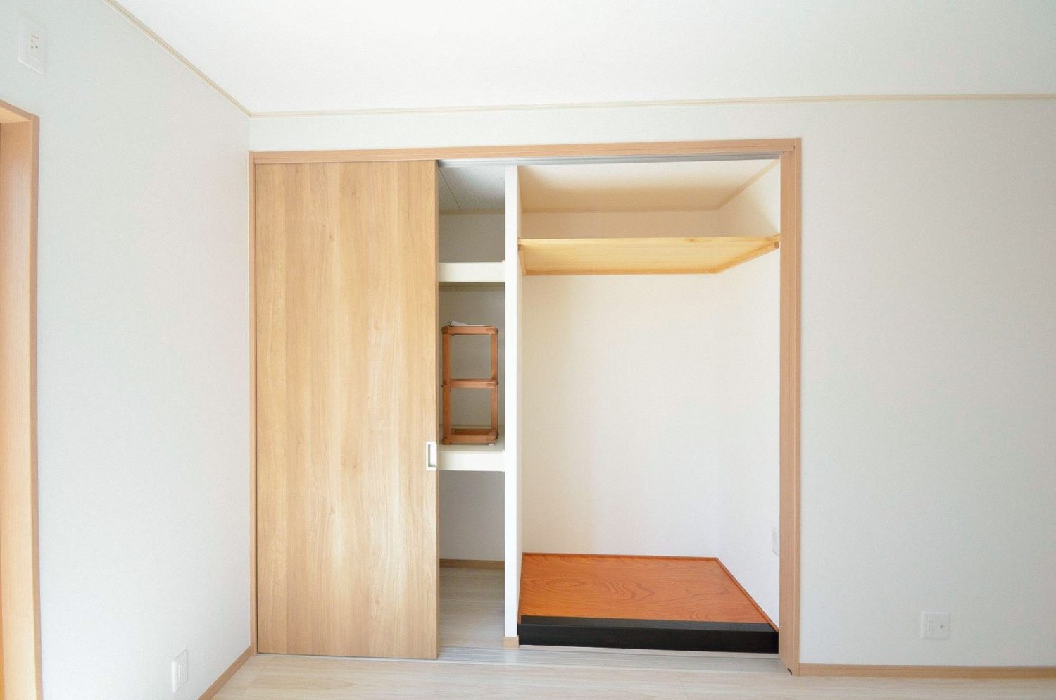 ちょっとめずらしい扉の無い押入。動作と移動動線をシンプルにし、日常をスムーズに過ごせます。