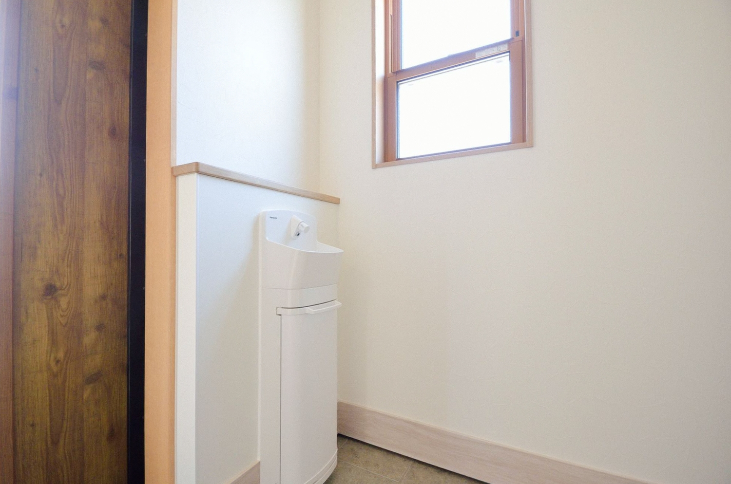玄関扉の横には手洗いがあり、清潔な手で室内に入ることができます。
