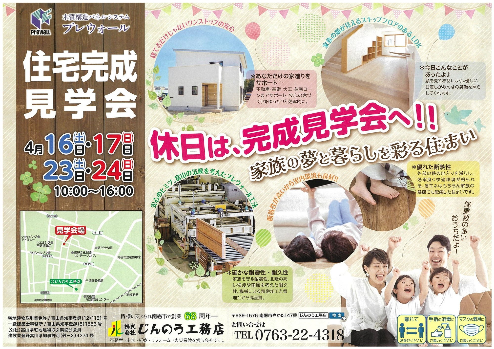 完成見学会の開催(南砺市福野地内) 2022.04.22 完成見学会の開催🏠💕 南砺市福野地内にて新築住宅見学会を開催いたします。 ・みんなで会話しようスキップフロア ・玄関に手洗いで室内を清潔に✨ ・多人数の住まいの工夫 ・収納は大事。階段下スペース???? ・湿気・雪との闘い富山の家づくり などなど 見どころ満載❗❗ ぜひ皆様ご来場お待ちしております。 場所はヘリオス図書館側駐車場です。 不動産・金融もお手伝いさせていただきました。